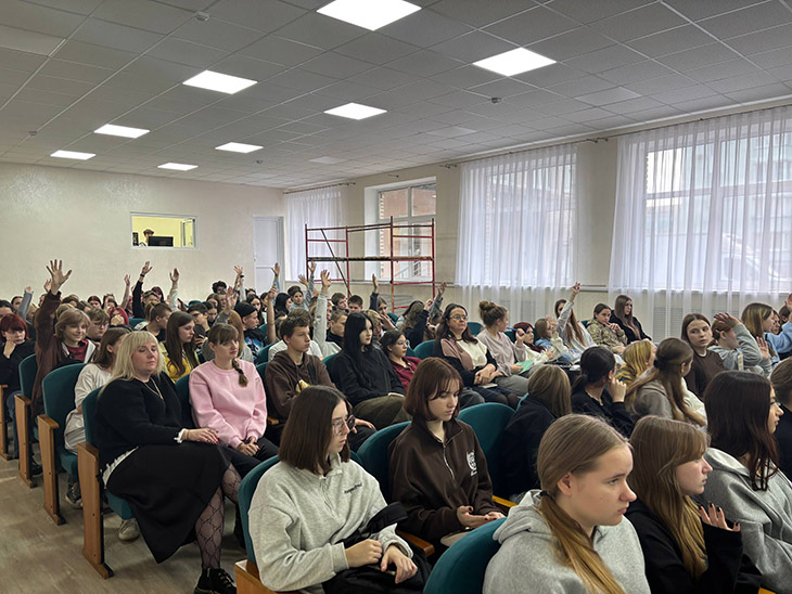 4.04.2025 в актовом зале колледжа состоялась профилактическая интерактивная беседа «СПИД и его профилактика», в которой приняли участие: Жупикова Марина Михайловна, помощник врача-эпидемиолога, Шамбовская Екатерина Александровна – психолог-социолог Оршанского зонального центра эпидемиологии.